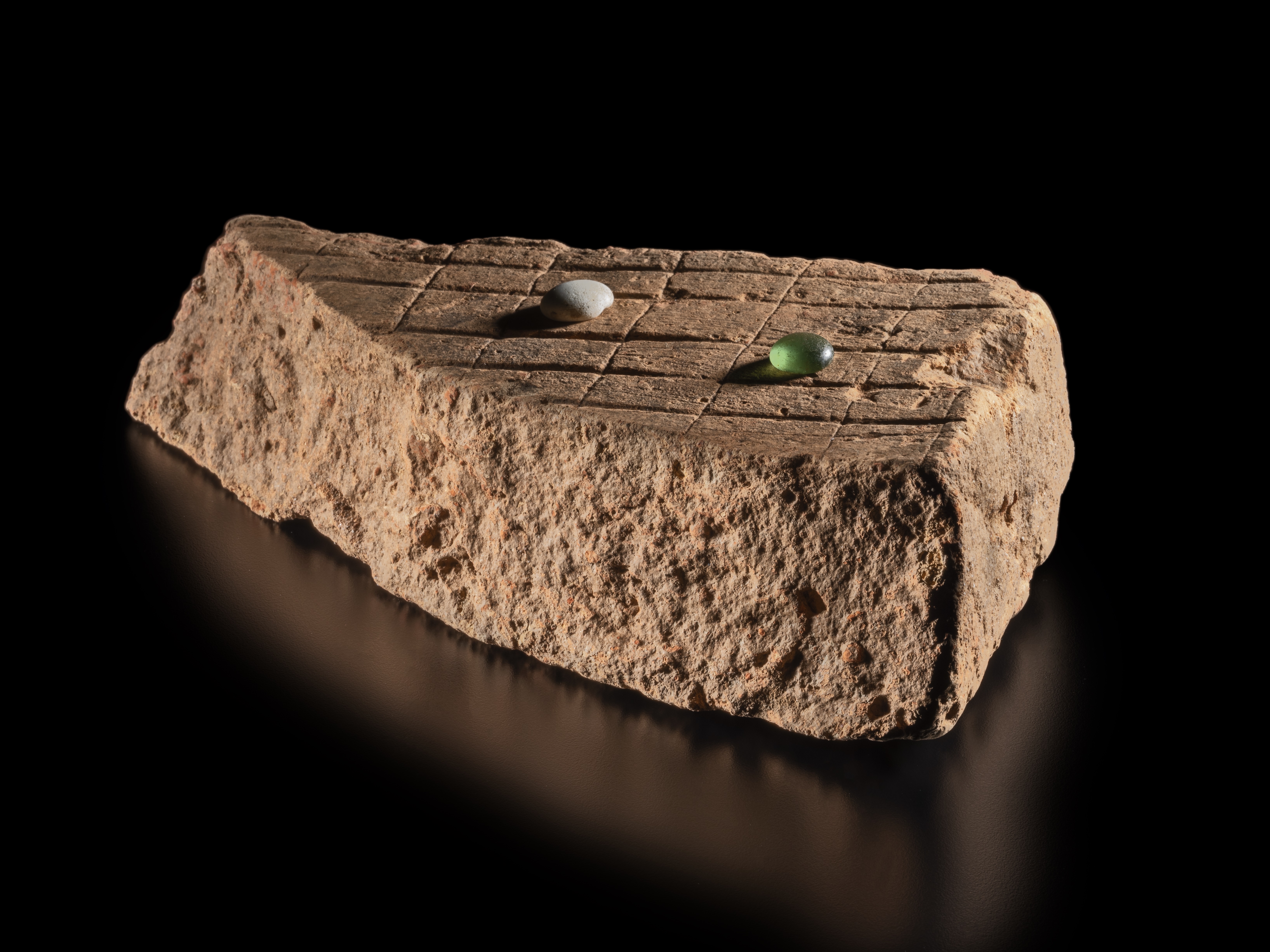 - Scacchiera in terracotta, II-III sec. d.C. e pedine da gioco in pasta vitrea I-IV sec. d.C