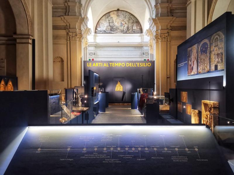 L’esposizione, a cura di Massimo Medica, direttore dei Musei Civici d’Arte Antica di Bologna, ripercorre alcune delle tappe salienti degli anni tormentati dell’esilio dantesco: il lungo peregrinaggio per corti e città passando per Roma, Forlì, Verona, Padova, Treviso, Bologna, Lucca, Pisa, Venezia, fino all’ultimo approdo a Ravenna, dove si è spento settecento anni fa e si trova il suo monumento funebre.