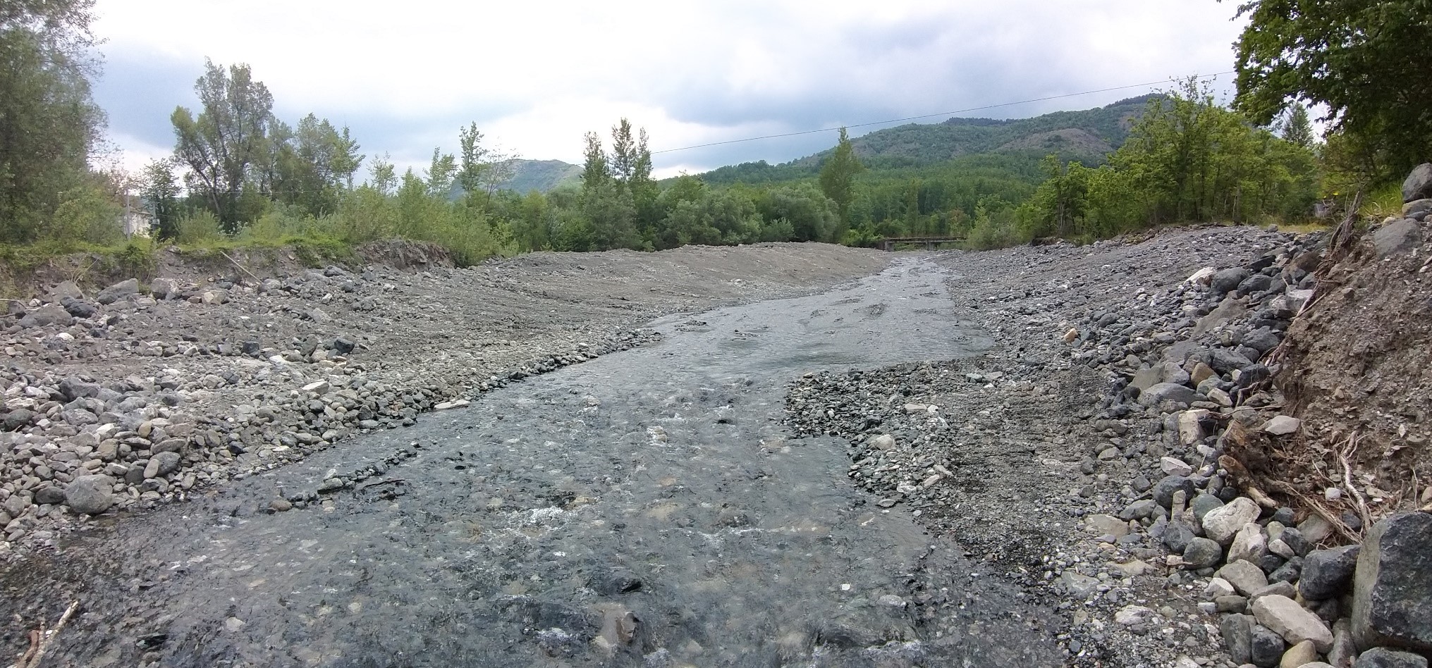 Anche a Bettola si è intervenuti per ripristinare la sponda sinistra erosa movimentando materiale litoide e rifacendo il rinforzo della sponda in pietrame.