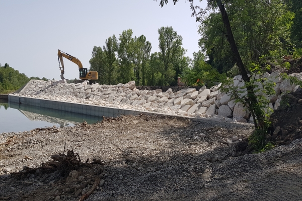 Con gli interventi di consolidamento è stata già realizzata una controbriglia a valle dell’opera idraulica e la vasca di dissipazione è stata riempita con massi ciclopici. Si è inoltre proceduto a rinforzare le paratie con tiranti di collegamento e a sistemare la platea intermedia, risanando le parti in calcestruzzo deteriorate.