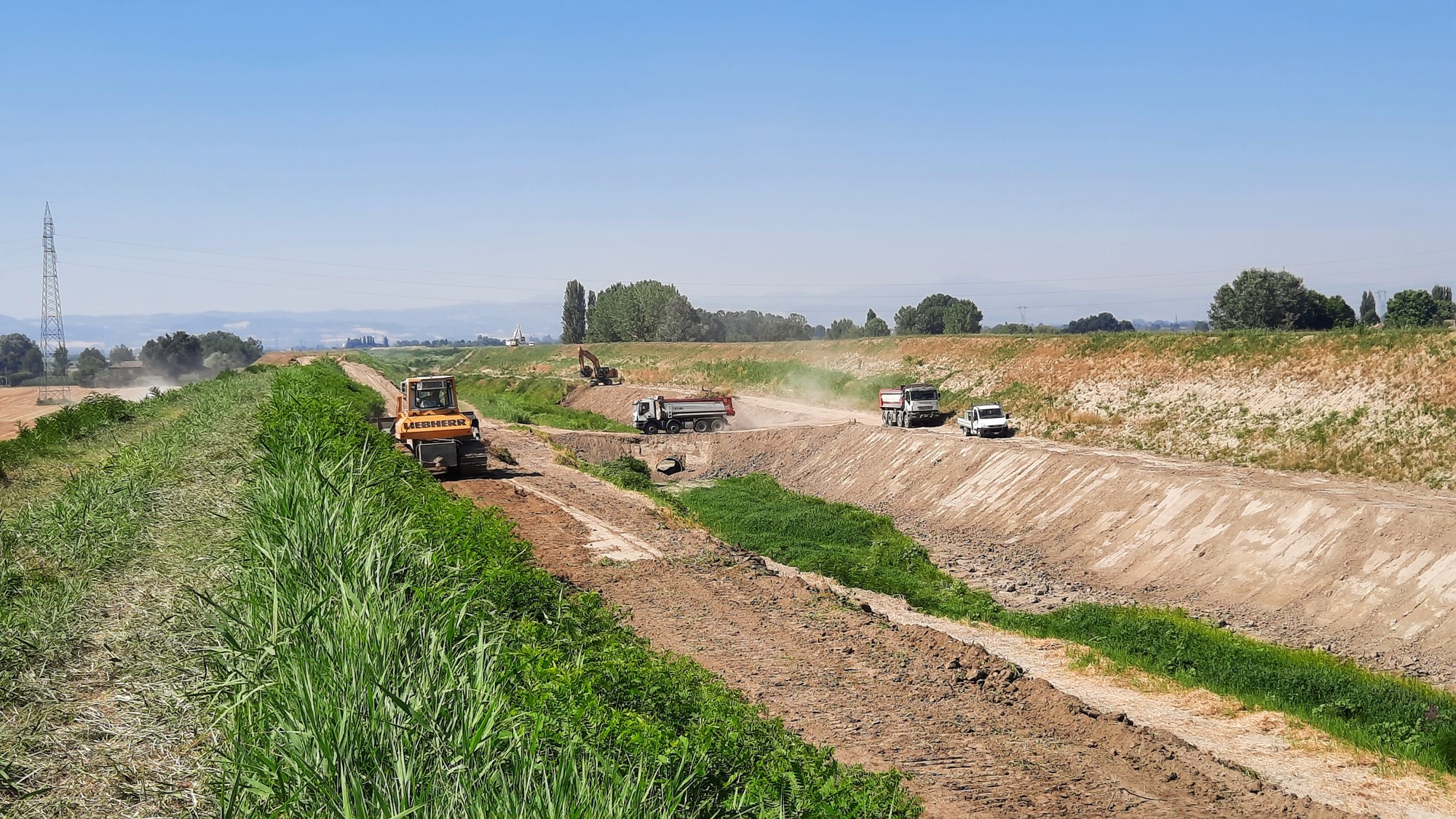 Contemporaneamente sono in corso le opere per allargare e alzare le arginature, oltre a rafforzarle con copertura di pietrame.