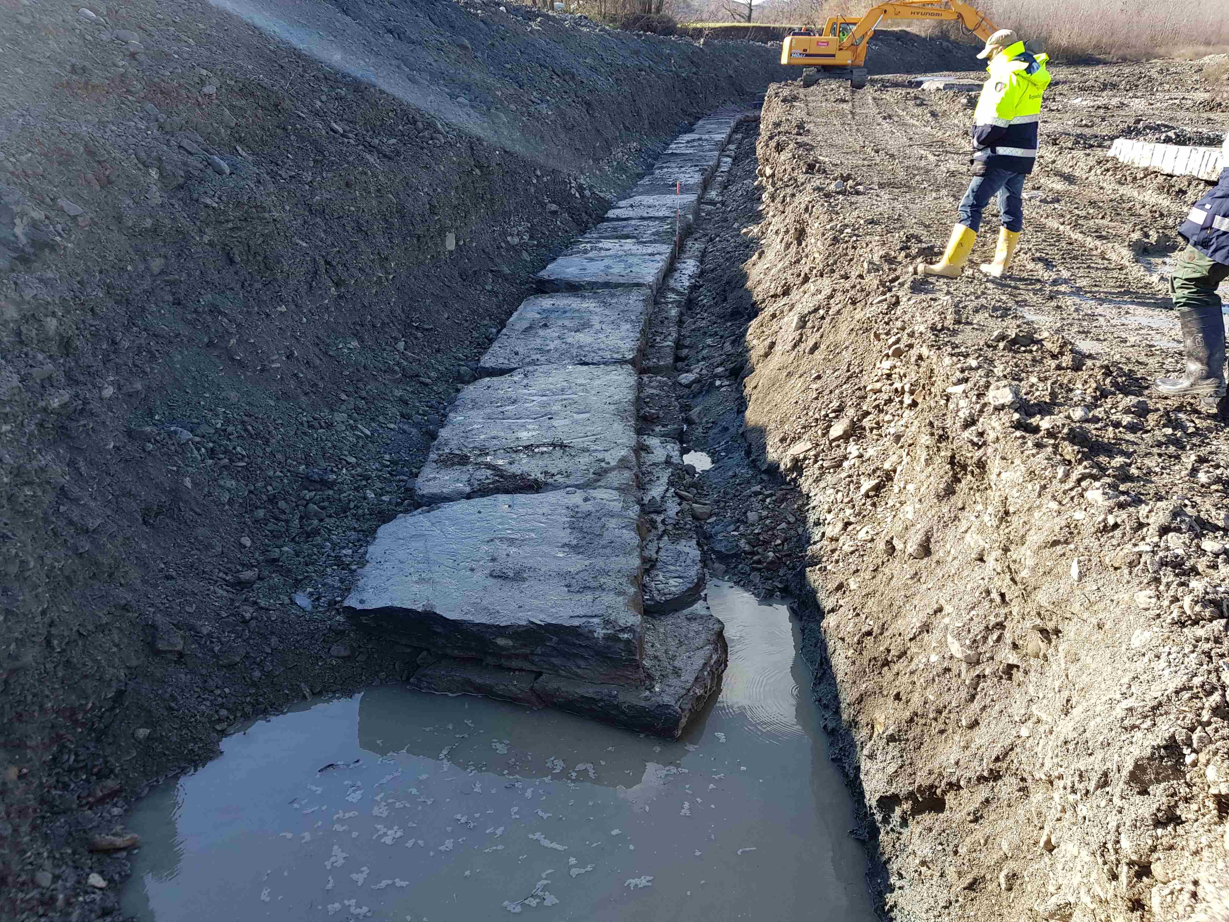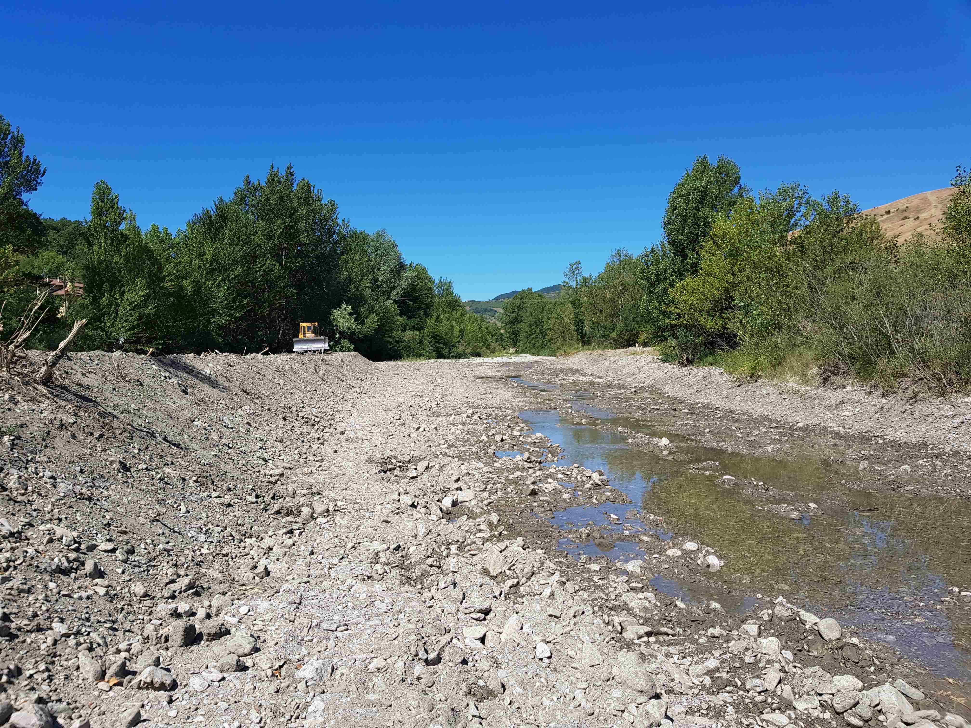 I lavori hanno comportato una consistente movimentazione del materiale di deposito che ha permesso la sistemazione complessiva del letto del corso d’acqua per circa 450 metri e il suo allontanamento dalla carreggiata stradale. Per rinforzare e proteggere questo tratto, lungo la strada è stata poi realizzato un intervento di difesa delle sponde per un tratto di circa 200 metri, mediante la costruzione con massi di una barriera di circa 2 metri di altezza e profonda un metro e mezzo.