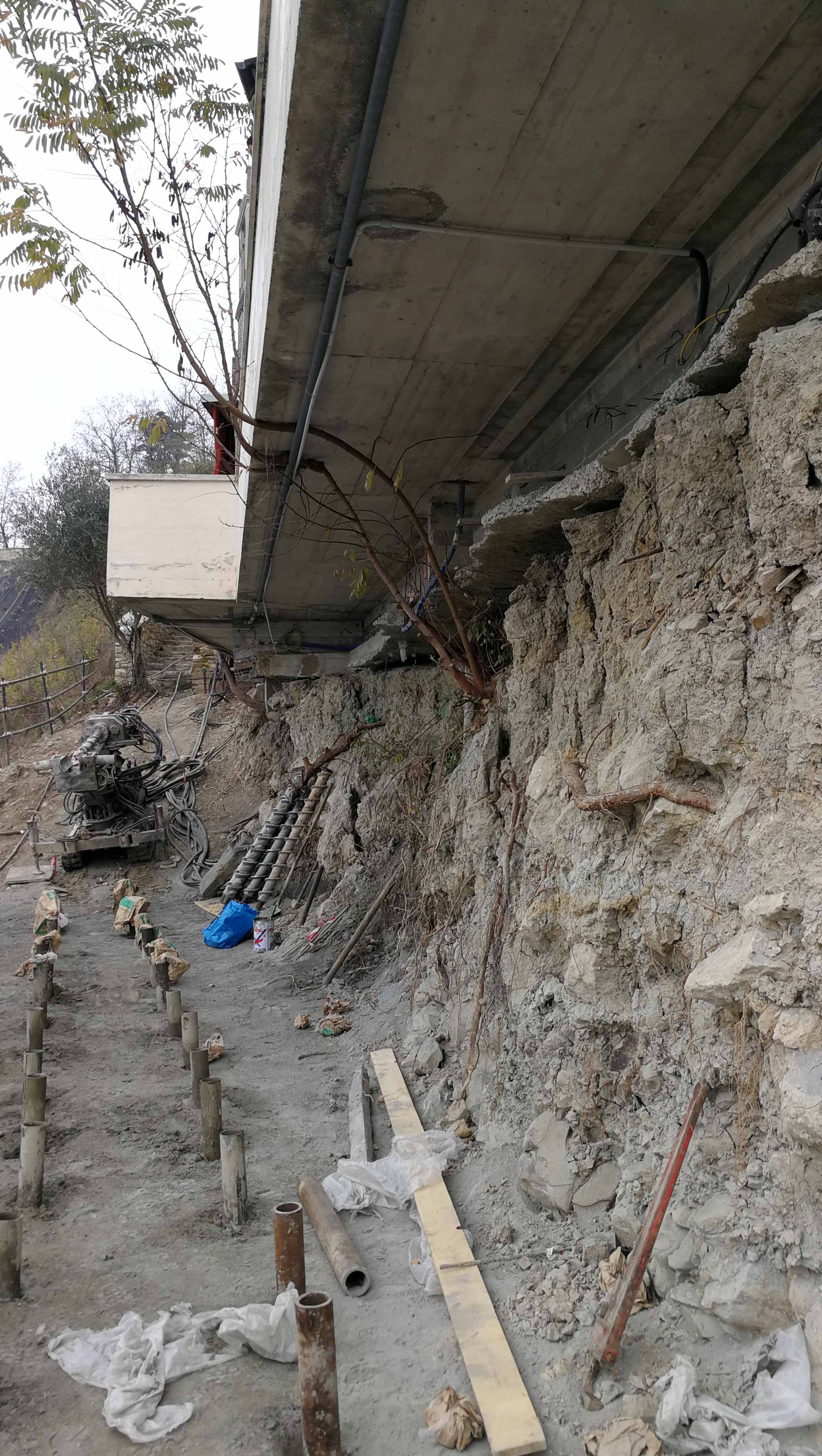 Le opere di consolidamento in corso, come le precedenti, si sono svolte con l’applicazione della tecnica del “soil nailing”, ovvero inserendo barre di consolidamento ancorate alla roccia: la ‘tenuta’ del terreno è assicurata dalla posa di una rete metallica rinforzata attraverso funi e una geo-griglia.