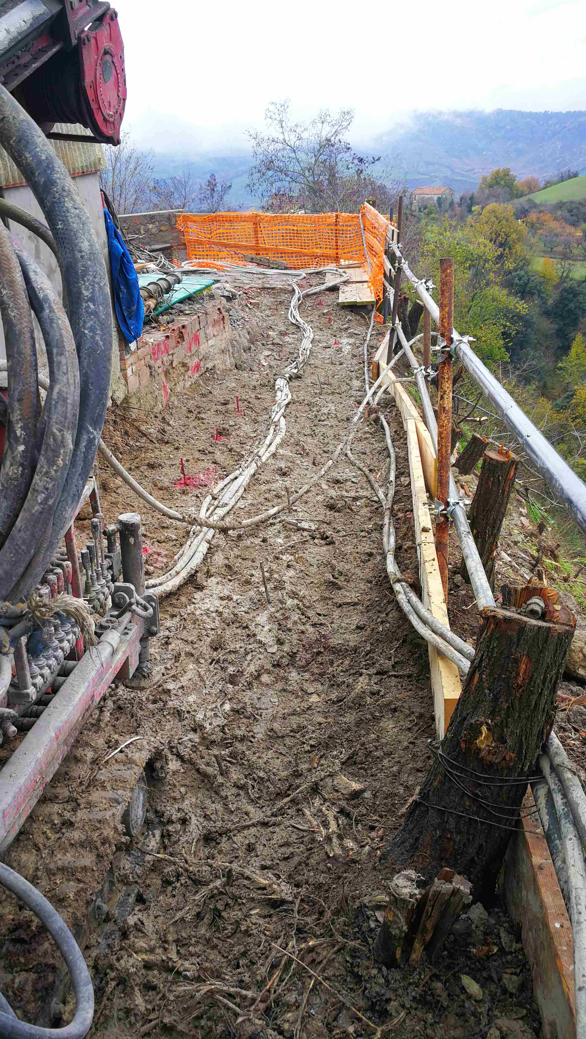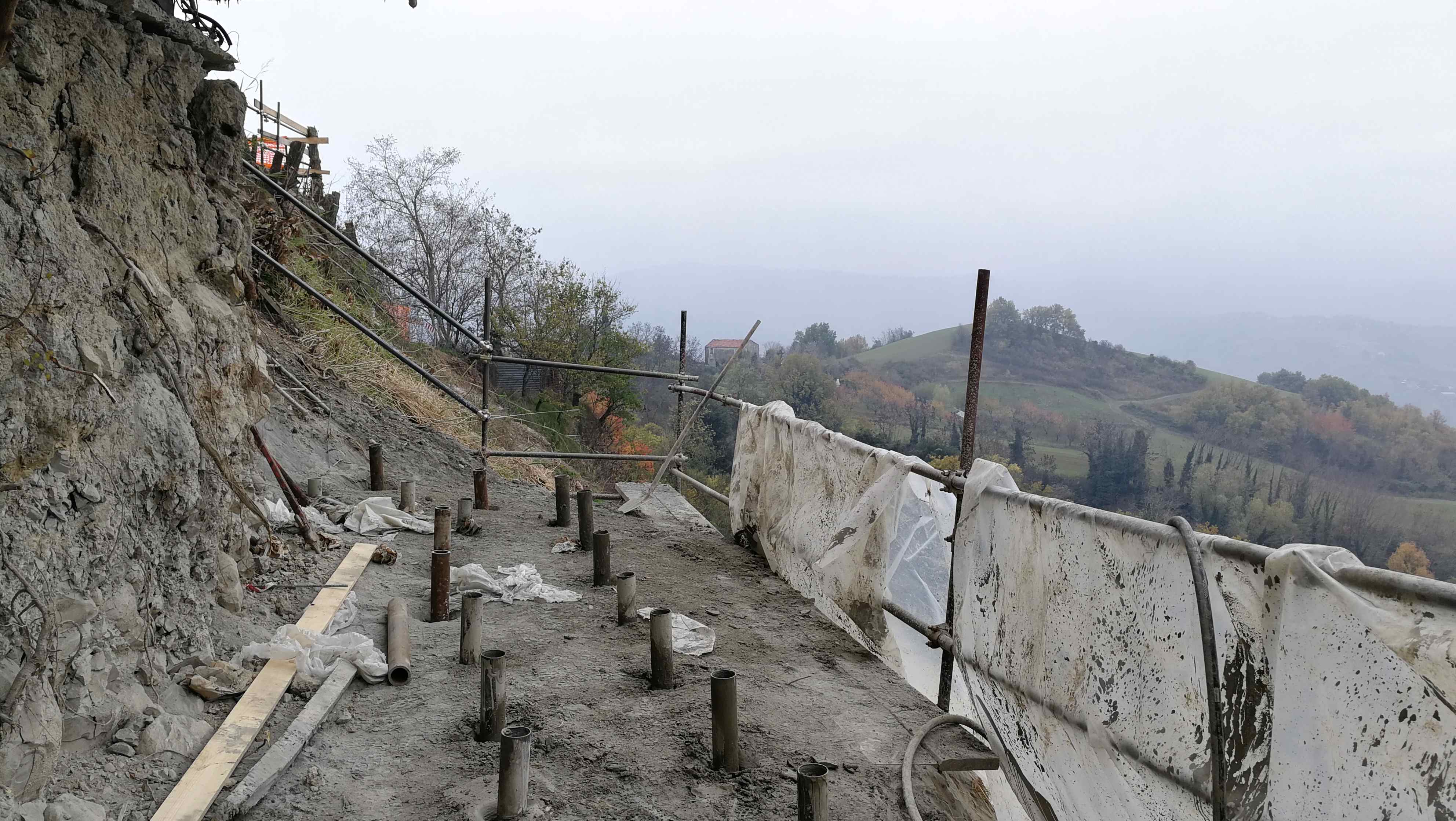 Per ostacolare l'arretramento delle aree di frana, arrivate a lambire le fondazioni dei primi edifici dell'abitato vicini alla Torre civica, sono stati inoltre costruiti dei muri di sostegno su micropali dotati di tiranti di ancoraggio. Un muro con barriera soprastante è stato realizzato a margine della strada comunale, in corrispondenza di una curva che non aveva protezione verso il dirupo. Concluso anche il consolidamento, con rete metallica e chiodature in roccia del muro stradale su via Malatesta. Al termine dei lavori è prevista l’asfaltatura di diversi tratti delle vie Garampa e Malatesta.