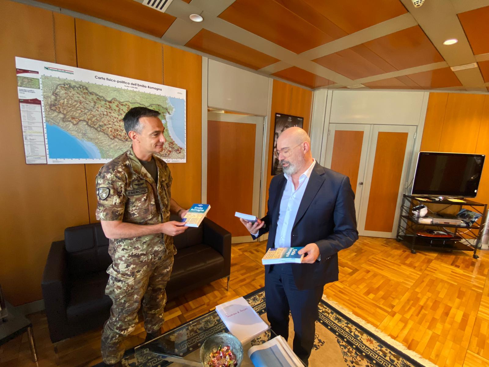 (Nelle foto allegate, il presidente Bonaccini e il Colonnello Tucci durante l’incontro in Regione)