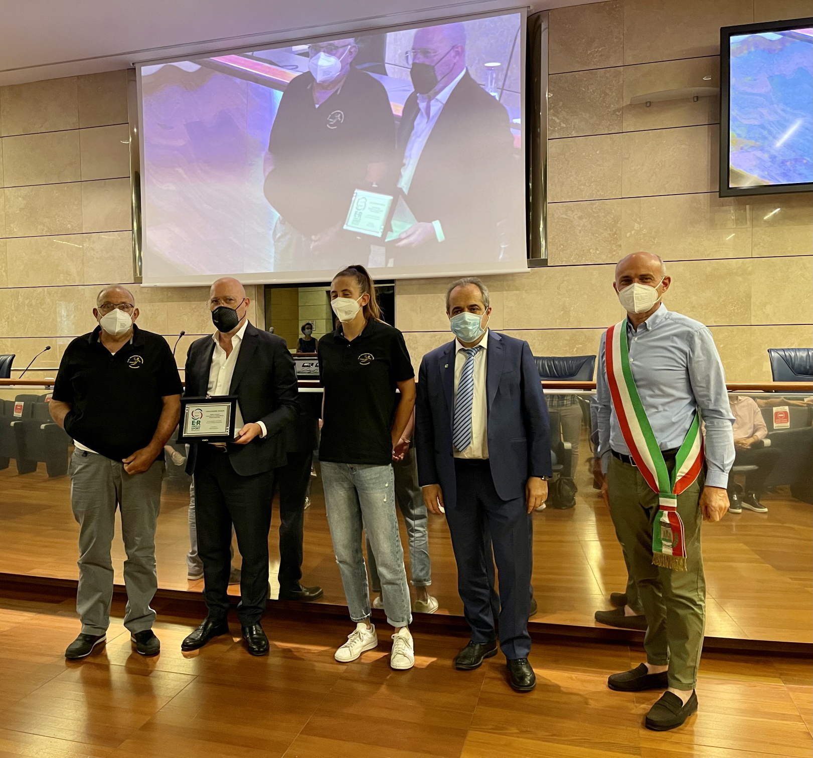 Bonaccini ha consegnato la targa ai presidenti delle tre società: Patrizia Bondavalli per la Pallamano Secchia Rubiera; Sergio Cattani per la Casalgrande Padana; Namuangrak Adisorn per la Pallamano Carpi