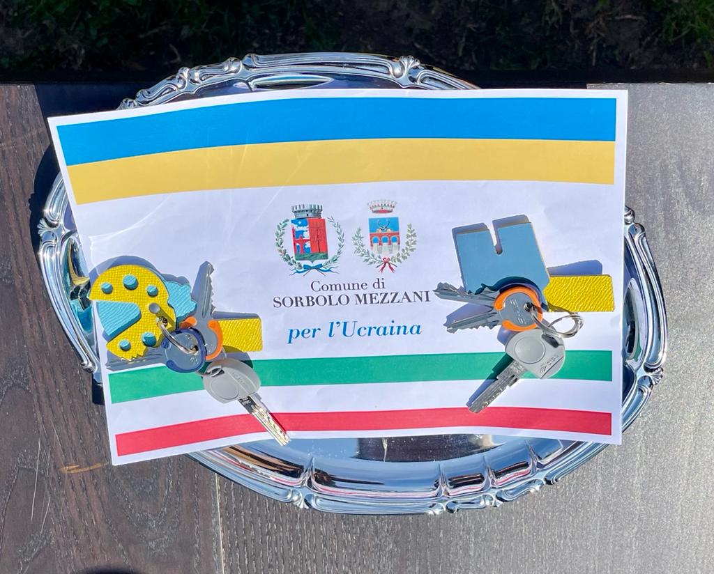 Bologna - Hanno aperto direttamente la porta di casa, della nuova casa che li ospiterà, con un mazzo di chiavi a loro consegnate su un vassoio. Sopra, la scritta: “Comune di Sorbolo Mezzani per l’Ucraina”.