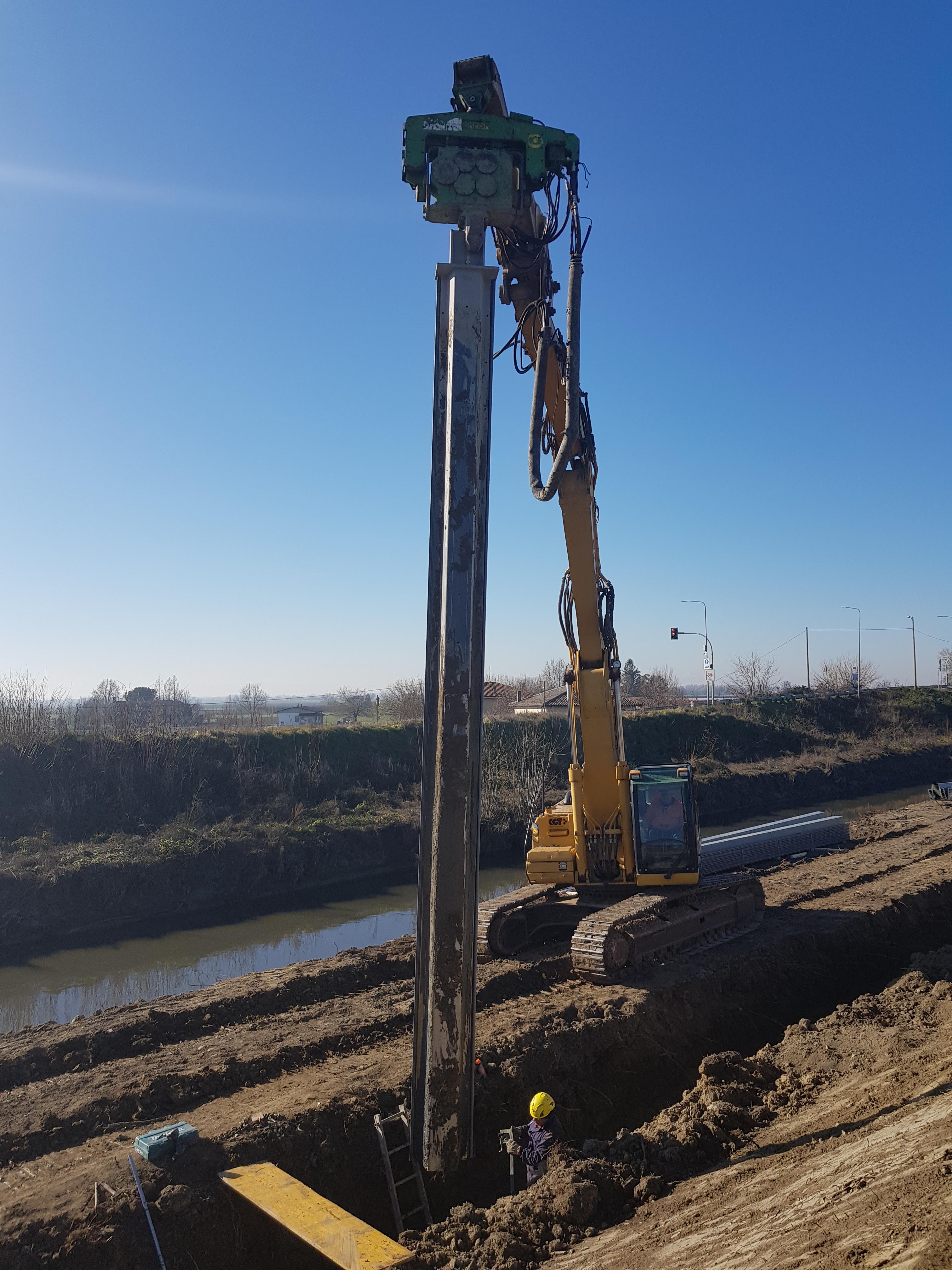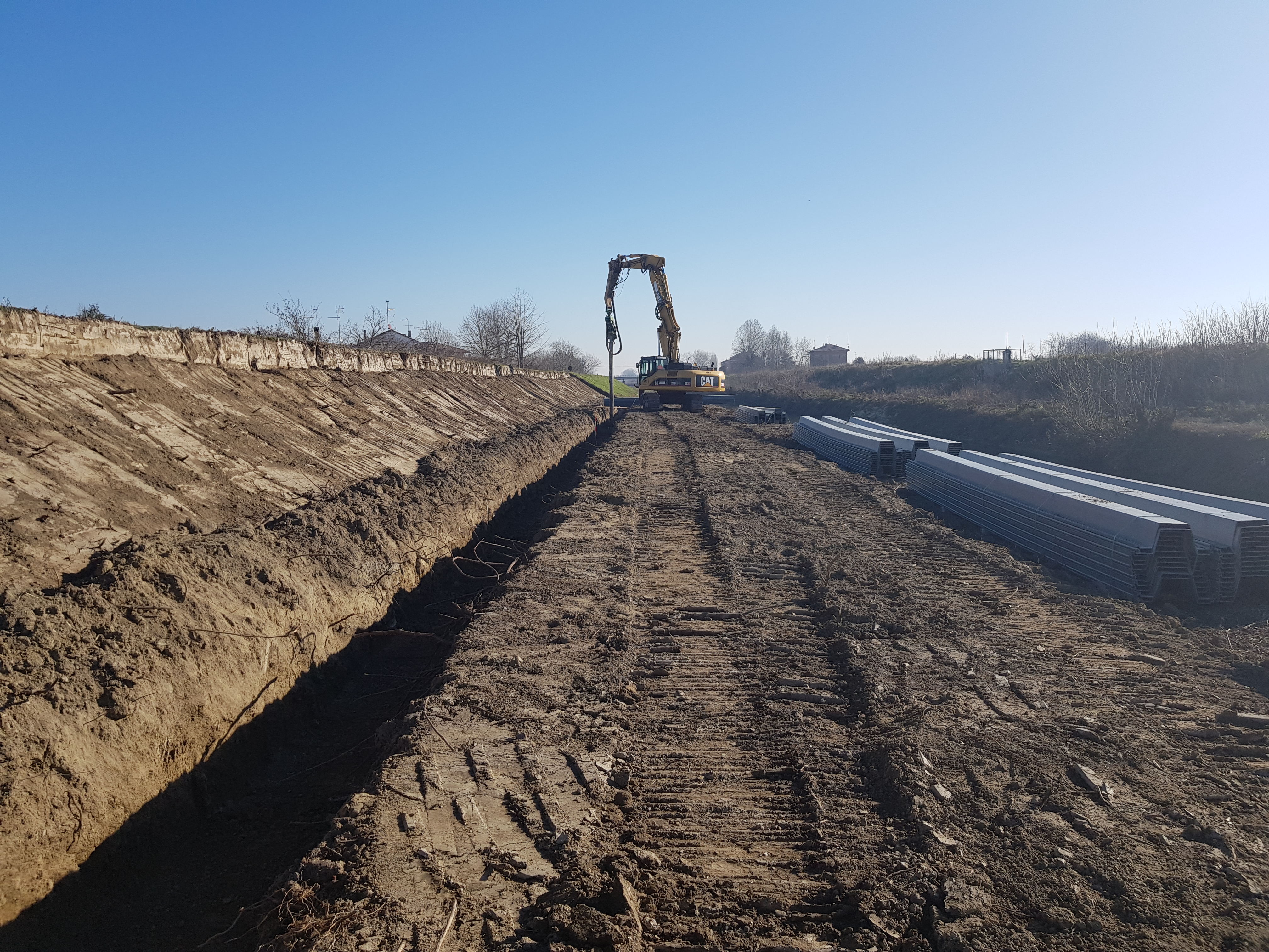 Il primo intervento, finanziato con 160mila euro, è localizzato in un tratto che parte dal ponte di via Bernardi e si distende verso valle per circa 120 metri. È prevista la posa di palancole plastiche, strutture che verranno poste al piede dell’interno dell’argine sinistro: l’obiettivo è interrompere i fenomeni di filtrazione idraulica provenienti dai materiali sabbiosi presenti sotto all’argine, creando una barriera impenetrabile nel caso in cui si verifichino eventi di piena.