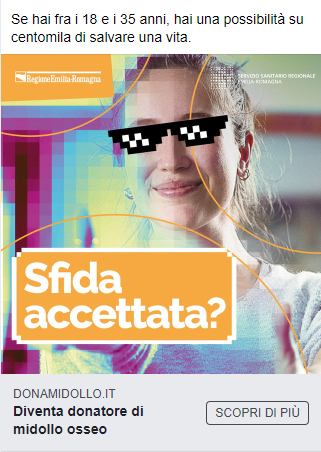 Realizzata insieme ad ADMO (Associazione Donatori Midollo Osseo), CRS (Centro regionale sangue) e CRT (Centro Regionale Trapianti), la campagna parte dall’idea che la donazione - che si tratti di organi, sangue, plasma, midollo osseo - è un gesto di generosità che richiama l’appartenenza ad una comunità, come quella degli emiliano-romagnoli, già molto generosi e chiamati ad ulteriori conferme.