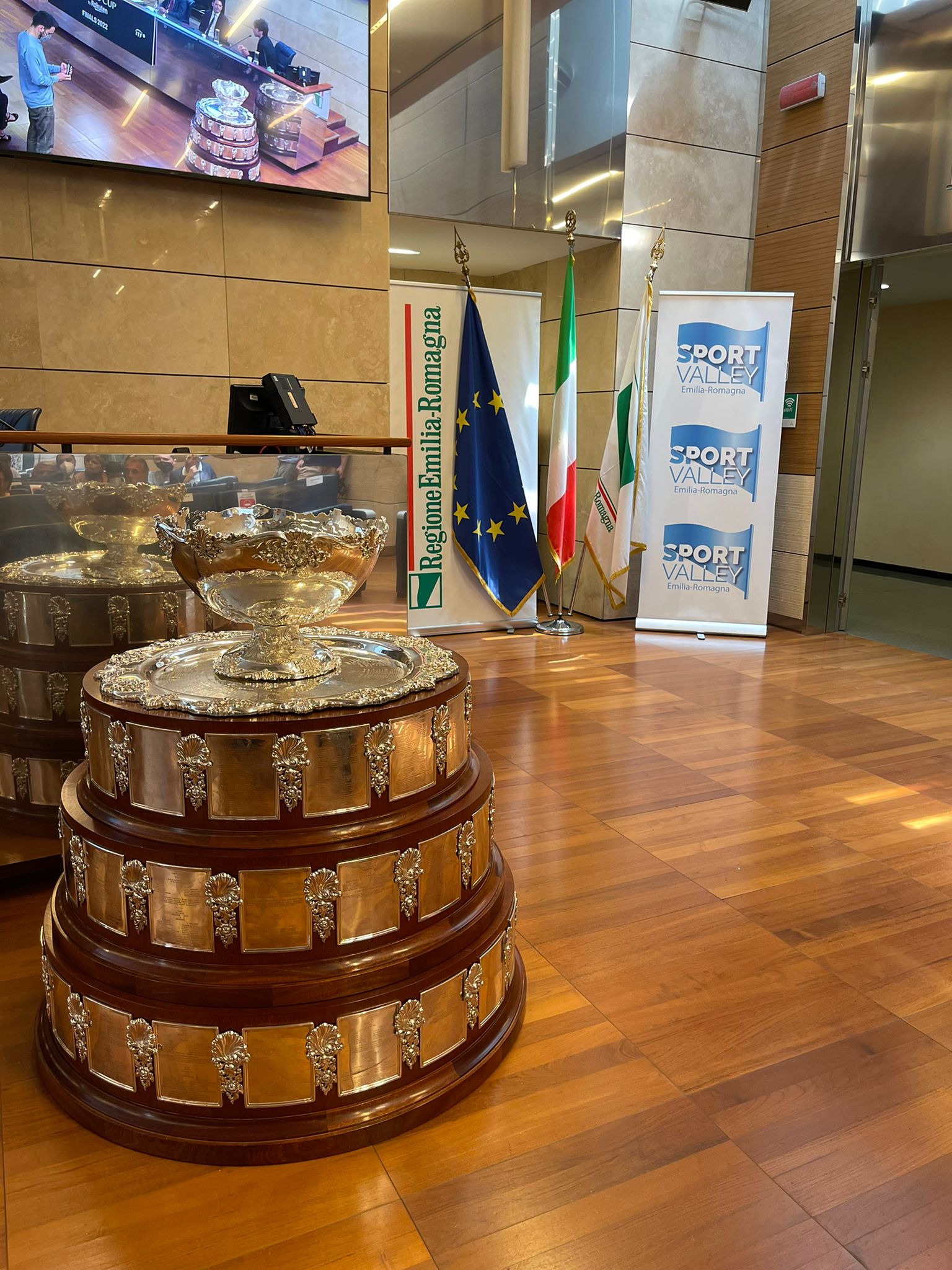 Ospite d’onore proprio lei, la Coppa Davis, il trofeo che quest’anno sarà assegnato al termine della fase finale a eliminazione diretta, che si svolgerà a Malaga (Spagna) dal 21 al 27 novembre prossimi, cui parteciperanno le due migliori classificate dei quattro gironi che compongono la fase finale. La Coppa Davis potrà essere ammirata dagli appassionati e da tutta la città di Bologna fino al 20 giugno prossimo: dal 9 al 12 rimarrà in esposizione presso la sede della Presidenza della Regione Emilia-Romagna (Viale Aldo Moro, 52) e dal 13 al 20 presso il punto di accoglienza di Bologna Welcome in Piazza Maggiore 1/a.