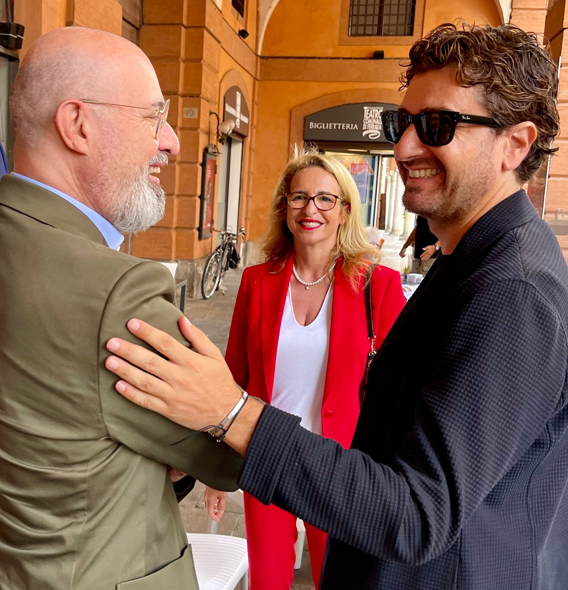 Bologna – Ciak, si gira. Il presidente della Regione, Stefano Bonaccini, ha incontrato questa mattina al Ridotto del Teatro Comunale di Ferrara il regista Alessandro Siani, la produttrice Federica Lucisano e il cast del film “Tramite amicizia”, che si sta girando in queste settimane nel capoluogo estense. La pellicola è prodotta da Fulvio e Federica Lucisano - Italian International Film - Gruppo Lucisano con Rai Cinema, in associazione con Bartlebyfilm, il supporto della Regione Emilia-Romagna e il patrocinio del Comune di Ferrara.