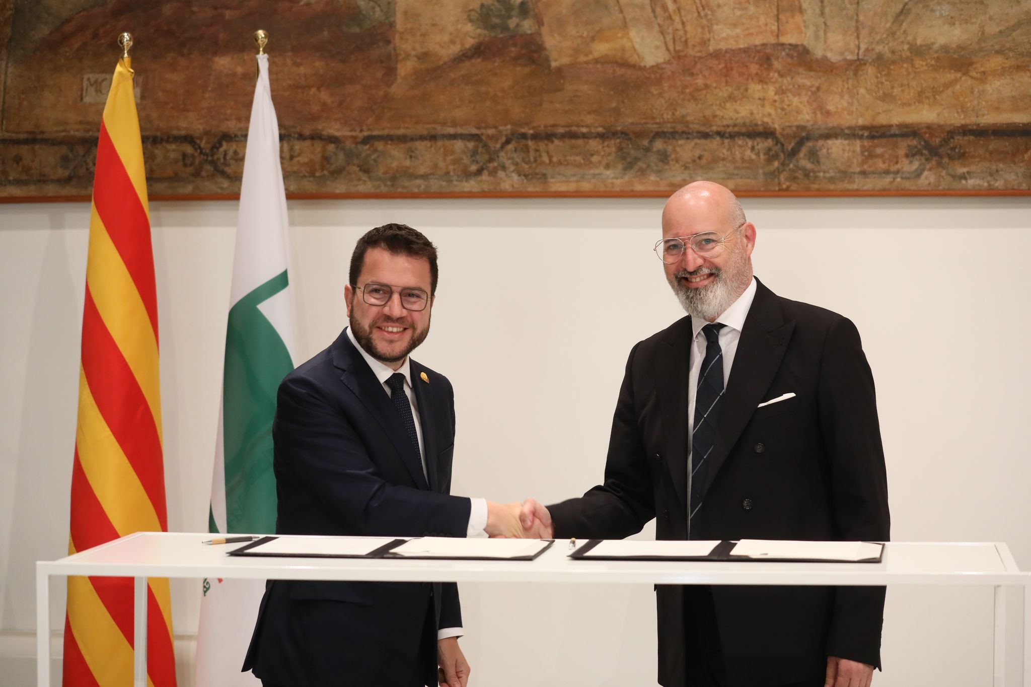 Alla firma dell’Accordo col presidente Aragonès i Garcia era presente anche Emanuele Manzitti, Console generale d’Italia a Barcellona.