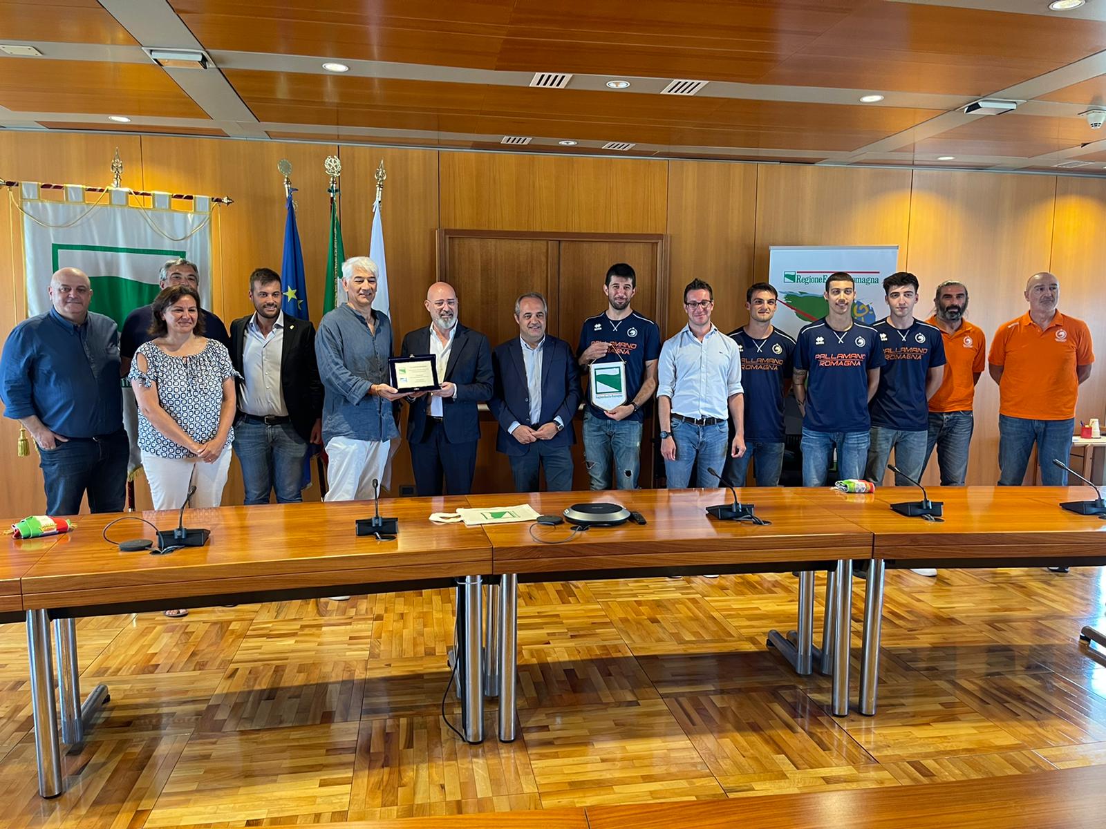 Il presidente della Giunta, Stefano Bonaccini, insieme al capo della segreteria politica della Presidenza, Giammaria Manghi, ha premiato oggi la società sportiva dopo la “storica” promozione in serie A1. All’incontro ha partecipato una delegazione composta dal presidente, Vito Sami, i dirigenti, gli allenatori Domenico Tassinari e Roberto Chiocchetti, e cinque atleti. Presenti anche i sindaci di Imola e Mordano, rispettivamente Marco Panieri e Nicola Tassinari, e l’assessora allo Sport del Comune di Faenza, Martina Laghi.