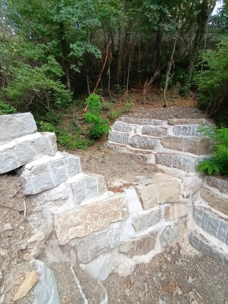Nelle tre strutture a cielo aperto sono stati utilizzati massi che vanno dai mille ai tremila chilogrammi, con l’obiettivo di inserirle al meglio nel territorio naturalistico circostante.
