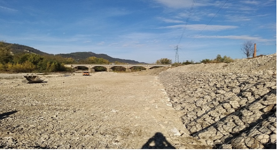 Altri gabbioni in massi sono stati collocati per la costruzione delle opere di difesa spondale.