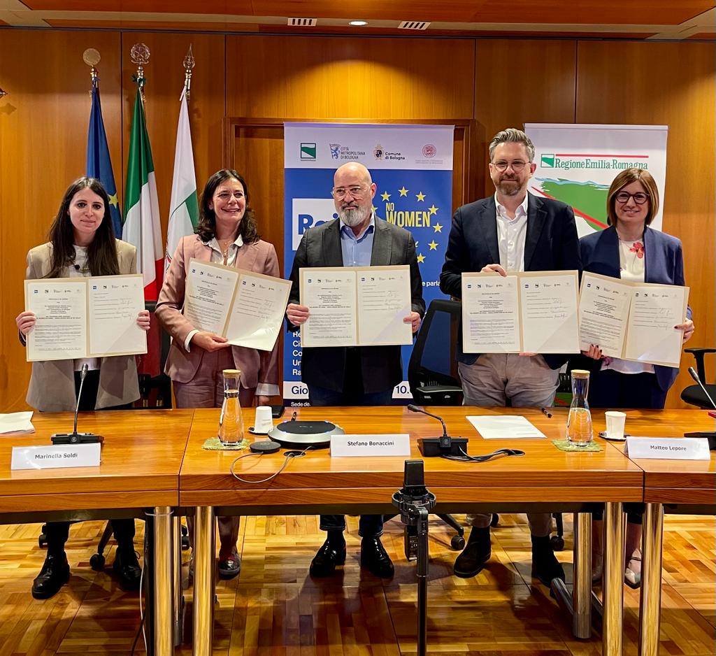 Oggi a Bologna la firma del protocollo d’intesa tra il presidente della Regione Emilia-Romagna, Stefano Bonaccini; il sindaco metropolitano di Bologna, Matteo Lepore; la vice sindaca, delegata alle Pari Opportunità, Emily Marion Clancy; la prorettrice dell’Università di Bologna, Simona Tondelli e la presidente Rai, Marinella Soldi.