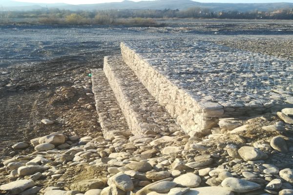 Attraverso lo spostamento e la movimentazione di materiale pietroso, sono stati mitigati i fenomeni di canalizzazione causa dell’erosione delle sponde, anche con l’apertura di nuovi canali. Si sono poi realizzate protezioni con la posa di massi ciclopici e gabbioni.