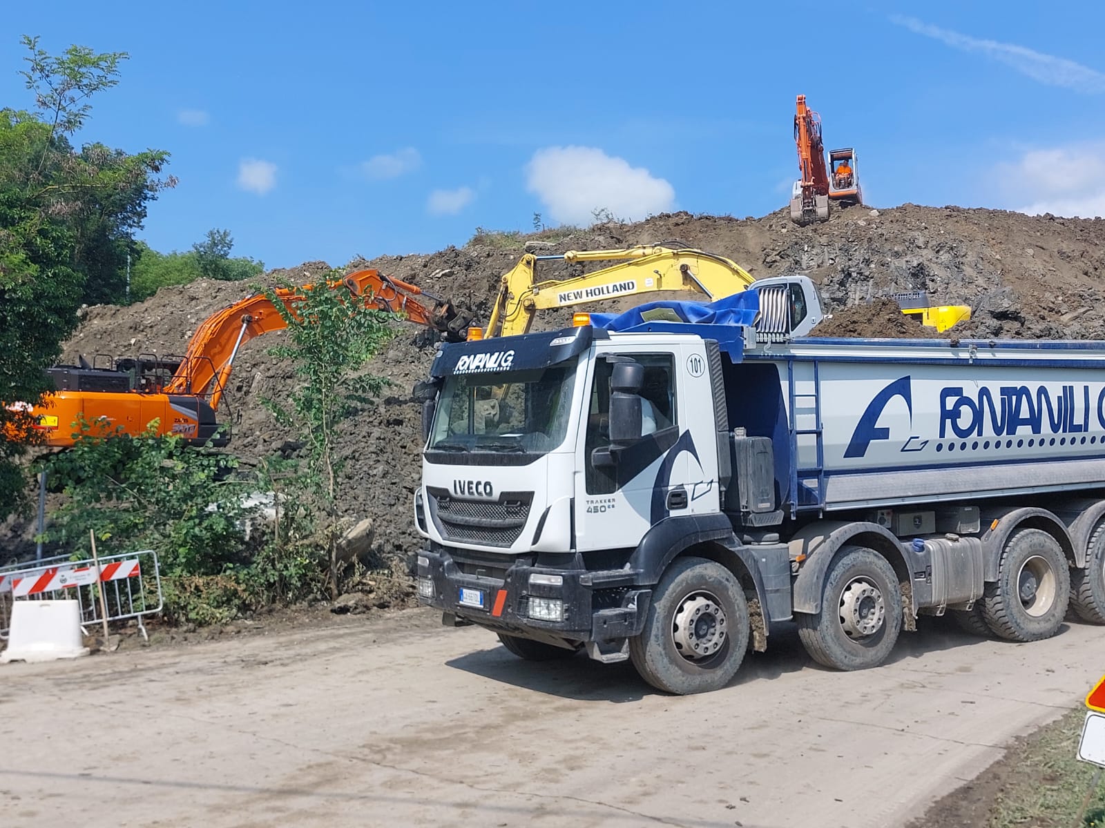I mezzi al lavoro asportano mediamente 4mila metri cubi di terra al giorno, deposta in aree demaniali sul terrazzo fluviale del fiume Secchia. Le operazioni si svolgono durante il giorno. Di notte il fronte di scavo resta viene monitorato da due distometri laser, un’antenna GPS fissa e una webcam installati dopo gli eventi del 20 maggio.
