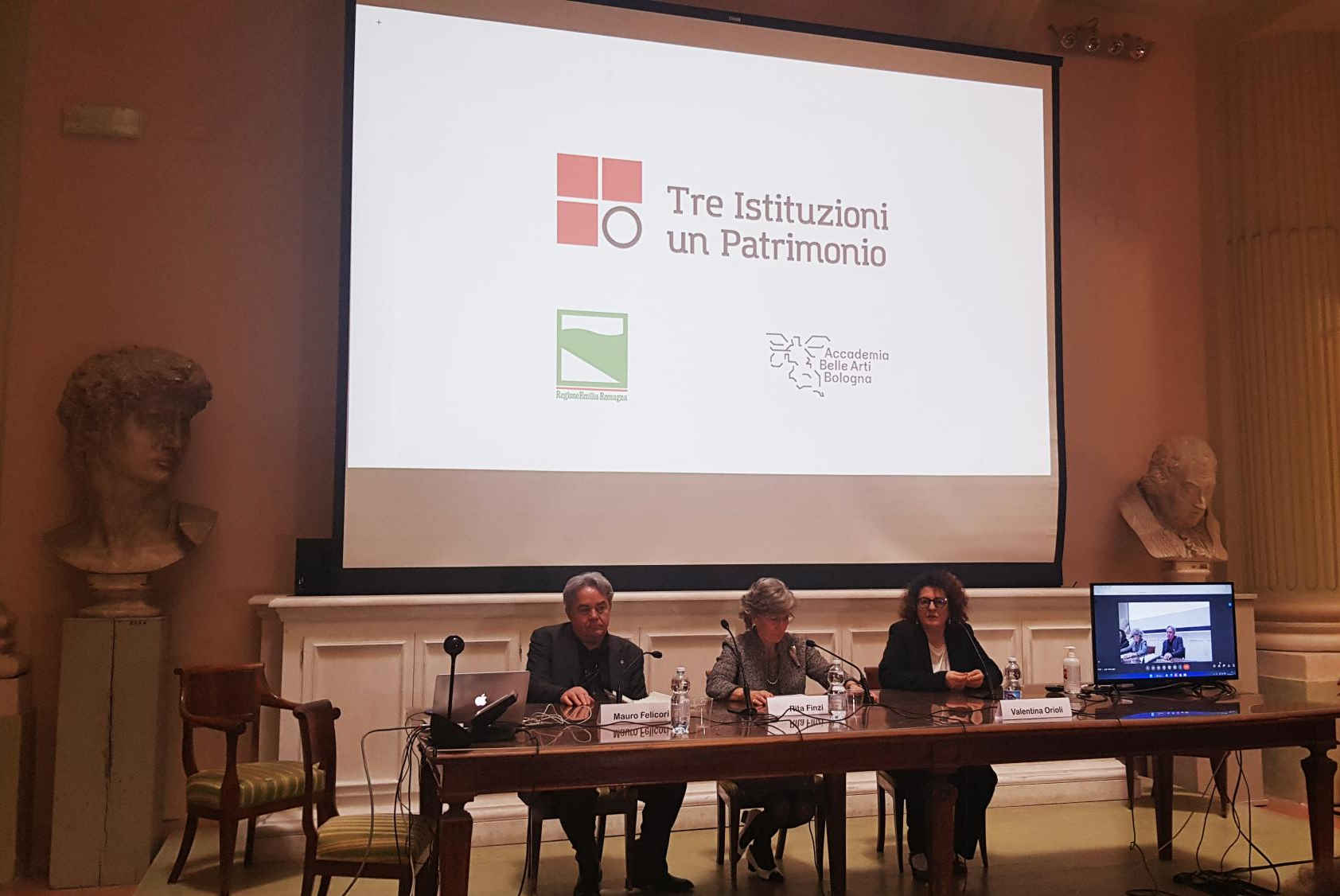Il progetto è stato presentato in conferenza stampa questa mattina, presso l’Aula Magna dell’Accademia di Belle Arti di Bologna, presenti l’assessore alla Cultura e Paesaggio della Regione Emilia-Romagna, Mauro Felicori, la presidente dell’Accademia di Belle Arti di Bologna, Rita Finzi, la direttrice dell’Accademia di Belle Arti di Bologna Cristina Francucci, l’assessora con delega alla Valorizzazione dei beni culturali e Portici Unesco del Comune di Bologna, Valentina Orioli, la soprintendente Archeologia, belle arti e paesaggio per la città metropolitana di Bologna e le province di Modena Reggio Emilia e Ferrara, Francesca Tomba, e la Site manager Portici Patrimonio Mondiale, Federica Legnani.