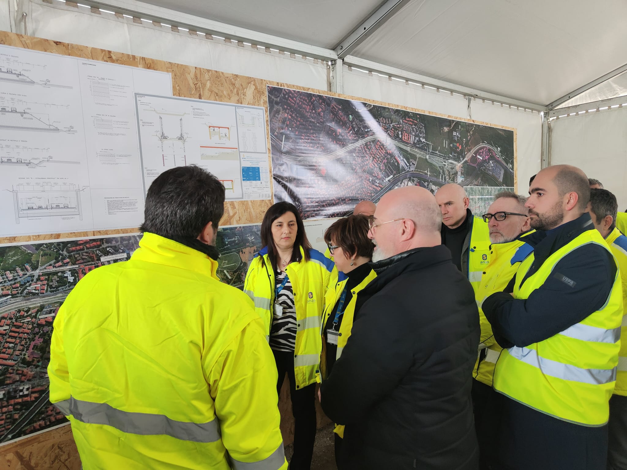 I lavori interessati dal sopralluogo riguardano la realizzazione di un’asta stradale in variante alla strada statale 64 Porrettana, lunga circa 2,1 chilometri e composta da due corsie per senso di marcia.