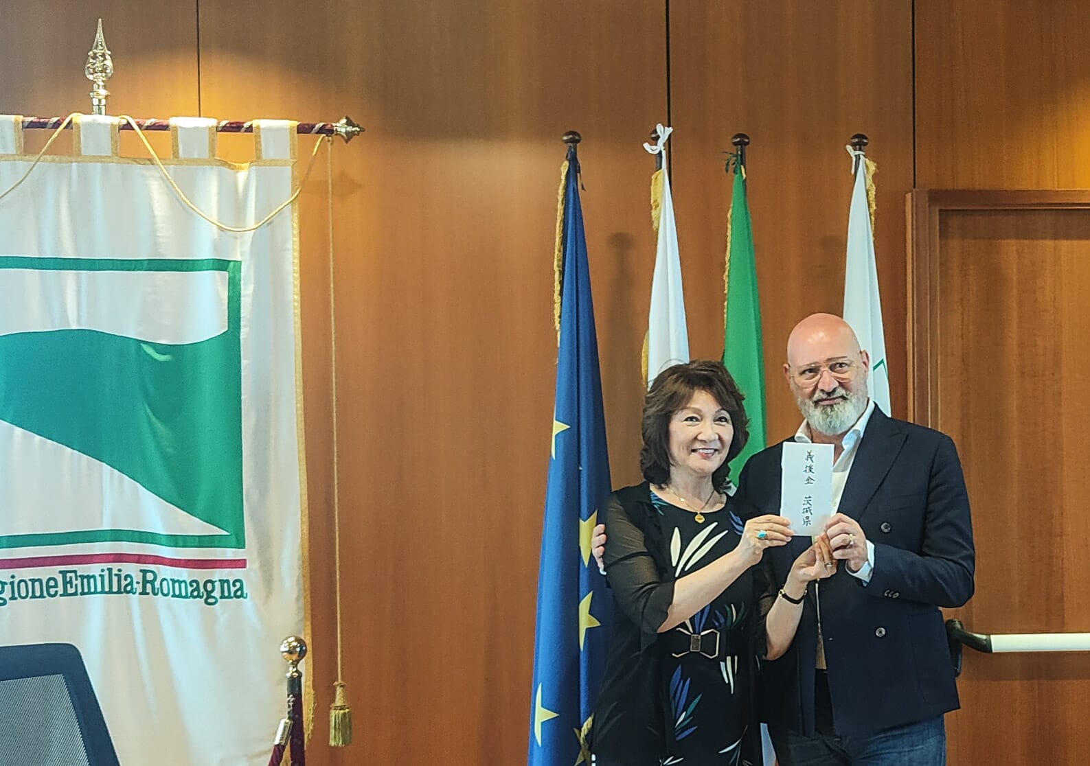 Bologna - Una donazione a favore delle comunità colpite dall’alluvione di maggio. A consegnarla al presidente della Regione Emilia-Romagna Stefano Bonaccini è stata Mika Kunii, cantante nata a Ibaraki (Giappone) e che attualmente risiede in Italia. Kunii, che da oltre 30 anni calca i più importanti palcoscenici in Italia, in Francia, in Germania e in Asia e si è esibita più volte nella Sala Nervi del Vaticano al cospetto del Papa Emerito Benedetto XVI, ha organizzato un concerto di beneficenza nella Prefettura di Ibaraki proprio per raccogliere fondi per le popolazioni colpite dalle alluvioni di maggio.