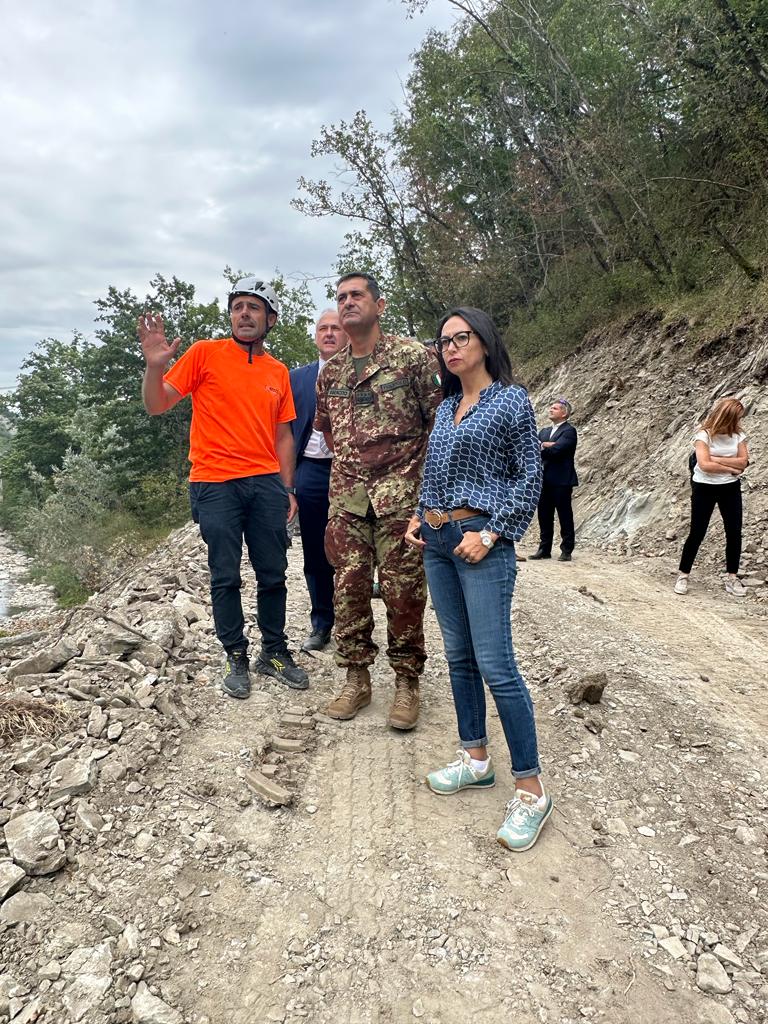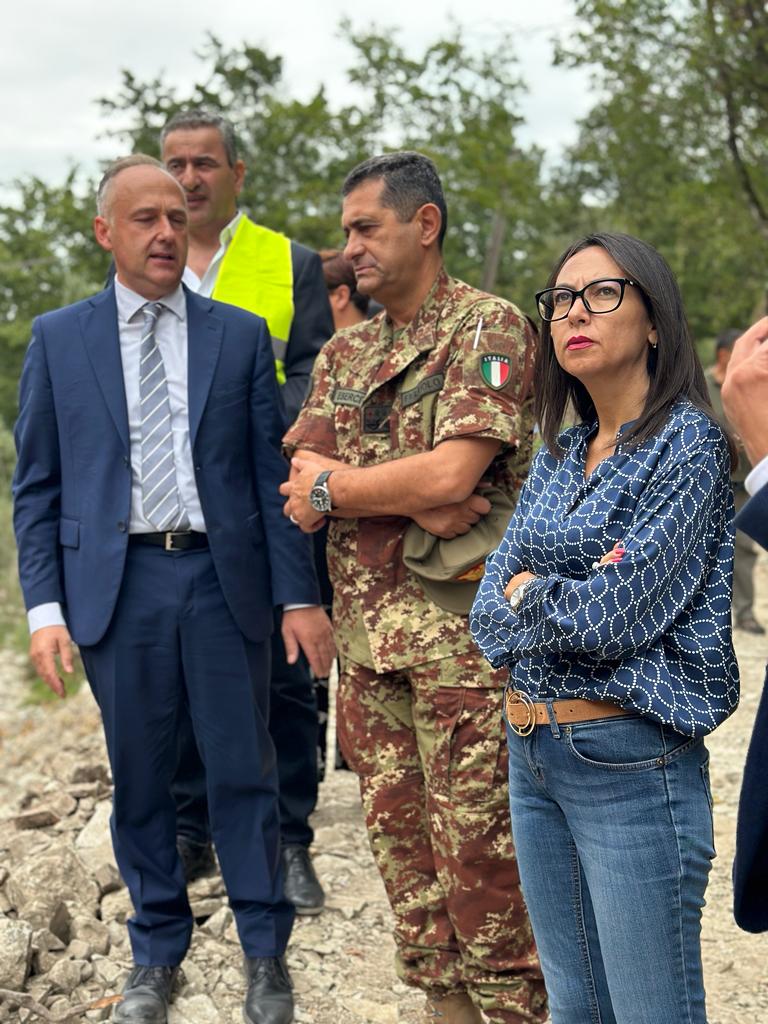 Dopo un incontro in mattinata a Rimini presso la sede della Provincia, a cui era presente anche la Viceprefetto, Patrizia Claudia De Angelis e gli amministratori dei comuni colpiti, il commissario Figliuolo e la vicepresidente Priolo hanno effettuato un sopralluogo con prima tappa a Casteldelci insieme al sindaco Fabiano Tonielli. Qui, tra gli altri, è stato visitato il cantiere in corso per il ripristino della sicurezza idraulica del torrente Senatello (400mila euro), in capo all’Agenzia regionale per la sicurezza territoriale e la protezione civile.
