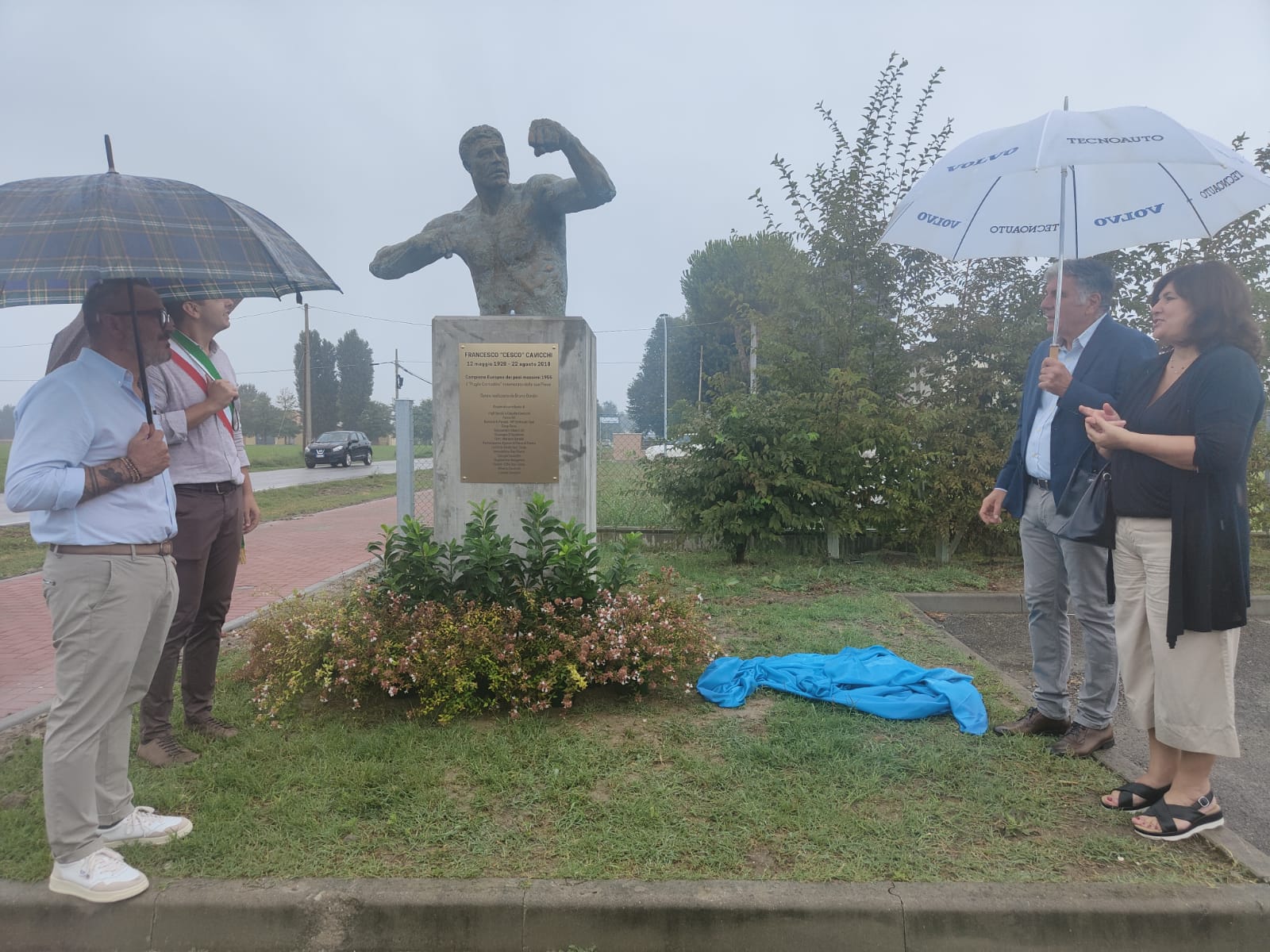 Vicini alla statua dedicata al pugile Francesco ’Cesco’ Cavicchi
