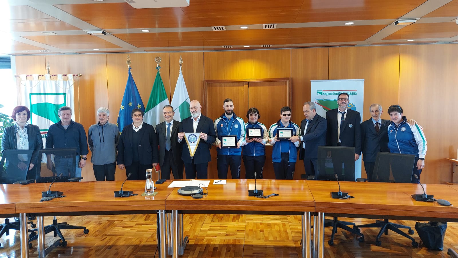 Sport. Il presidente Bonaccini premia gli atleti della Nuoto Sub Modena Bruno Loschi vincitori dell’oro al primo campionato mondiale paralimpico di nuoto pinnato: “Risultati straordinari che rendono orgogliosa tutta l’Emilia-Romagna, un esempio di tenacia e passione oltre ogni ostacolo”