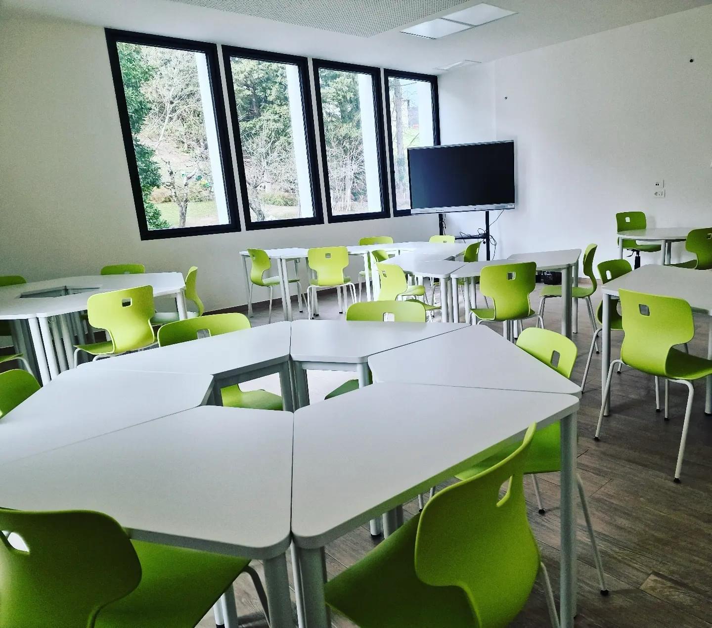 La nuova scuola è organizzata con aule disciplinari - per permettere agli studenti di muoversi negli spazi in base alle diverse materie da seguire -, dotata di impianti di domotica e a regolazione intelligente - che autoregolano la luce e il calore in base alle condizioni esterne -, e con pannelli fotovoltaici sul tetto che generano una produzione di energia di 50kw.