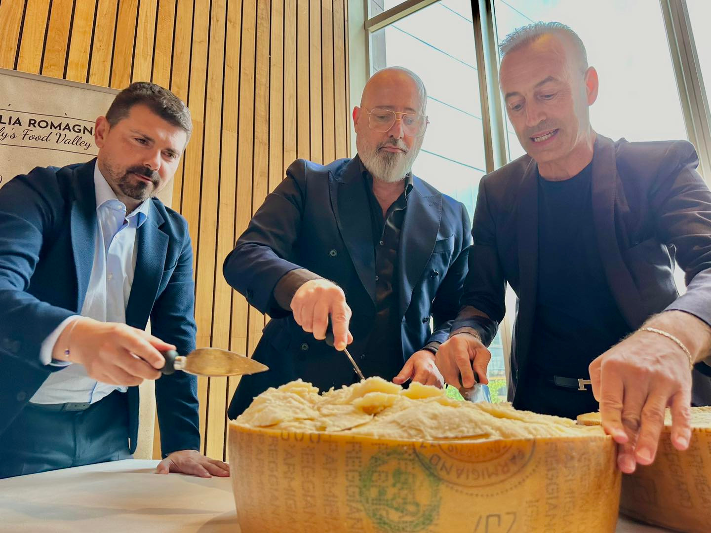 Quindi, nel pomeriggio il grande evento organizzato in collaborazione con Fiere di Parma, Consorzi di tutela, Enoteca Regionale Emilia-Romagna e Alma, Scuola internazionale di cucina italiana. Presenti oltre 70 buyer, 60 addetti del settore, 10 catene di ristoranti, operatori della grande distribuzione organizzata e diversi rappresentanti della stampa, italiana e americana.