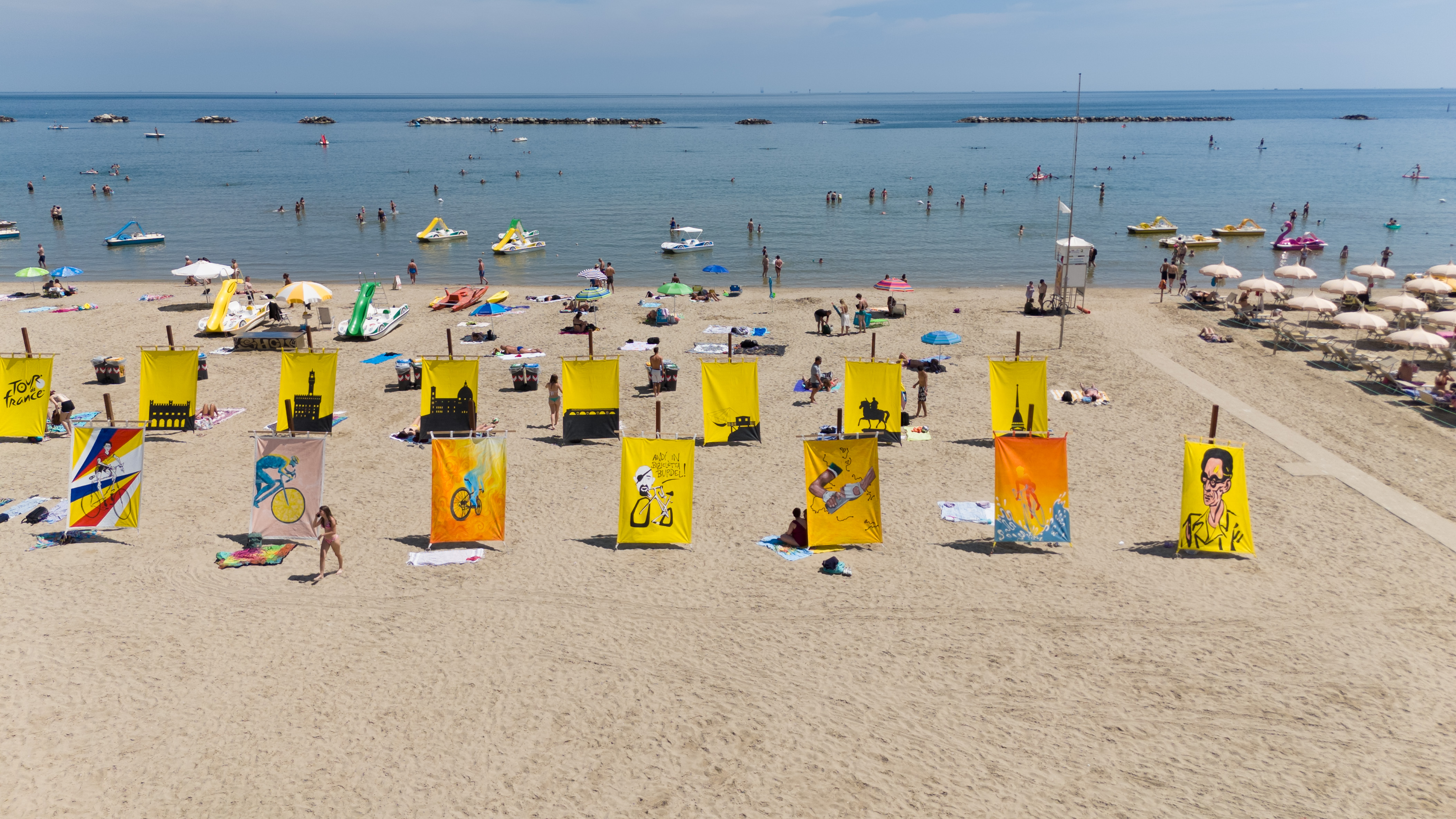 E da qualche giorno sono state inaugurate le Tende al Mare, una tradizione di Cesenatico che quest'anno è stata consacrata al Tour de France, in collaborazione con l’Accademia di Belle Arti di Ravenna.