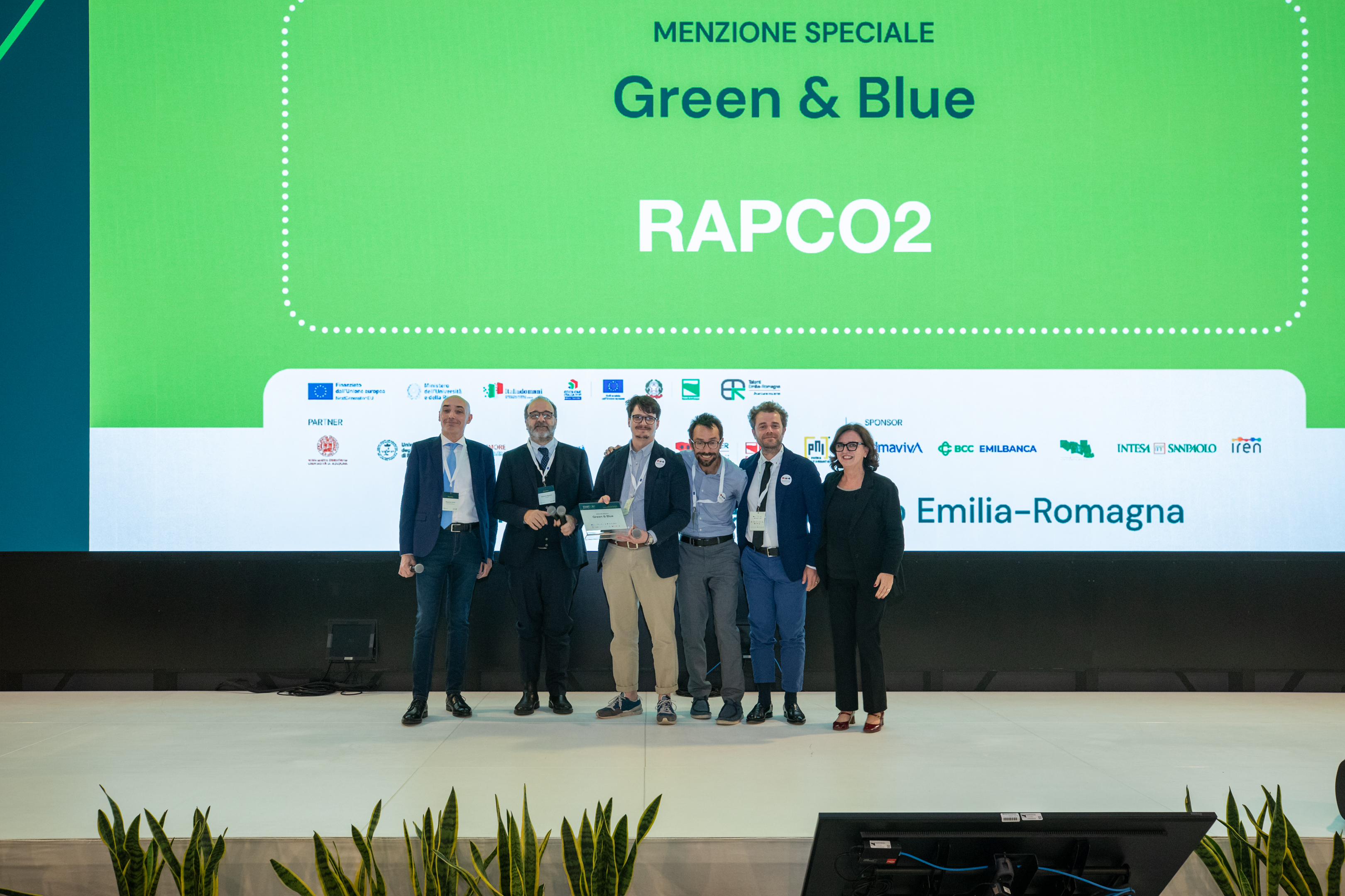 Il progetto vincitore, RAPCO2, si aggiudica anche la menzione speciale per l'impatto sul cambiamento climatico, mentre quella per l’innovazione sociale va al progetto PrecisionEx, una piattaforma che identifica la terapia più efficace per i pazienti oncologici. Quella per l’imprenditoria femminile a HeartWatER, sistema intelligente che trasforma l’acqua quotidiana in uno strumento di prevenzione attiva. Insieme a loro anche OrthoLensAR, progetto che applica l’intelligenza artificiale in ortodonzia, proposto sempre da un team Unibo.
