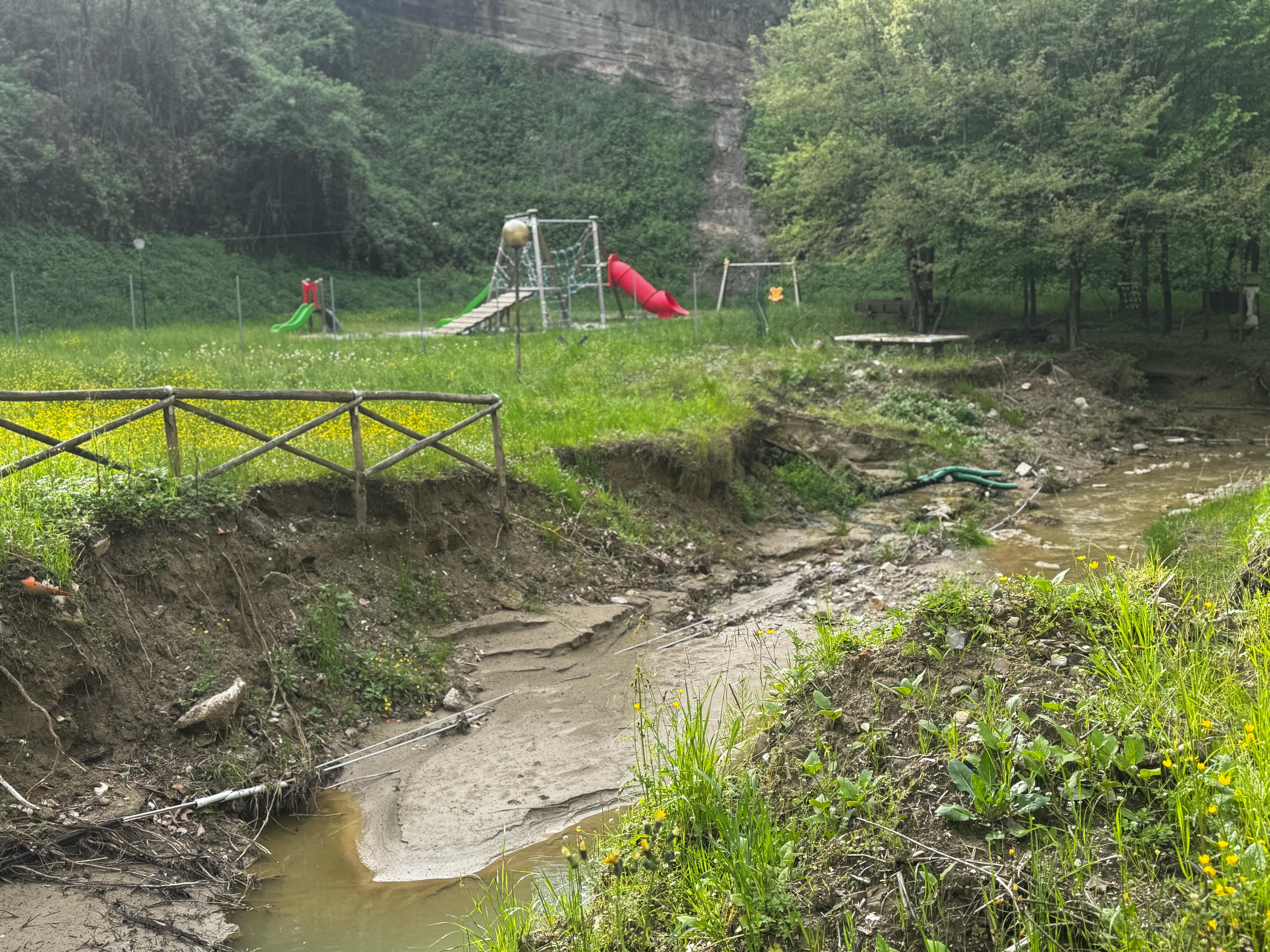 L’area “Conca Verde”, dove sorge il complesso della piscina, ha avuto grossi danni per il sormonto delle sponde da parte del rio Colombarino, affluente del Santerno, e per le interferenze con ponti o sovrappassi.